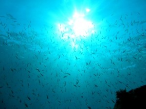 イシヨウジ・ハリセンボン群れ・クロホシイシモチ群れ・タカベ群れ・オキタナゴ群れスズメダイ群れ