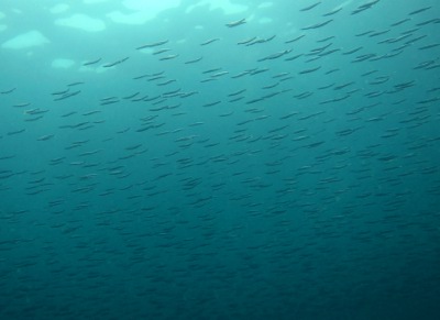太陽の日差しが差し込むエリアに、きらびやかなキビナゴ♪