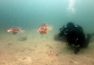 群れている中、ミノカサゴ達がロックオン!!