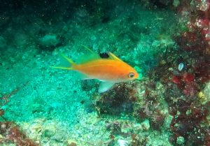 岩場ではキンギョハナダイが群れている中