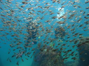そんな水中は、水温18~20℃ 透明度~10m前後