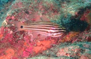 砂地にはミノカサゴがサビハゼを狙ってロックオン!!