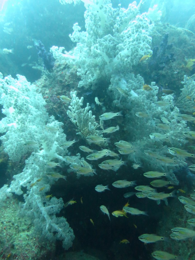 ネンブツダイの子供達にソフトコーラルに彩り鮮やかなキンギョハナダイが加わり、イサキやタカベと更に大にぎわい♪