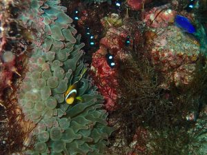 クマノミの子供、ミツボシクロスズメダイの子供も成長中です♪