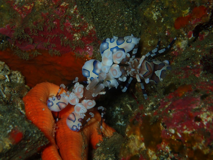 岩場遊びに移れば、フリソデエビやイソコンペイトウガニ・ビシャモンエビなどの甲殻類から