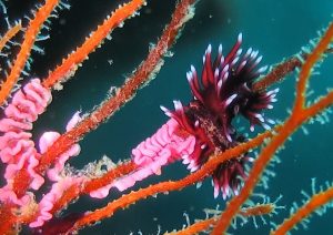 岩場では、スミゾメミノウミウシが産卵中(*゚▽゚*)