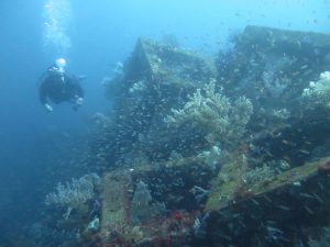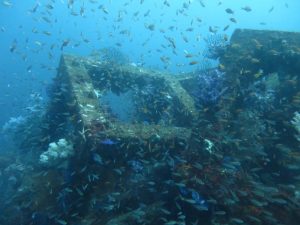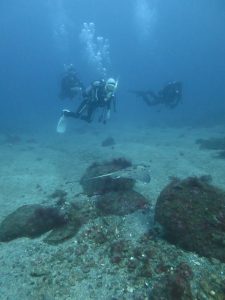 飛び越えた先には、イシダイやメジナ・イスズミ・コロダイの群れからに