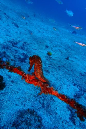 オオウミウマはちょっと深い所にロープに繋がってゆーーらゆら