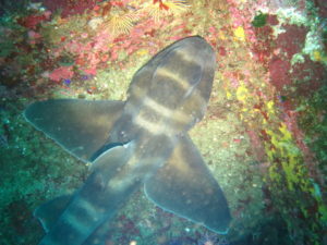 近くにいって漁礁をのぞけば、可愛いネコザメがお昼寝中でした~!!