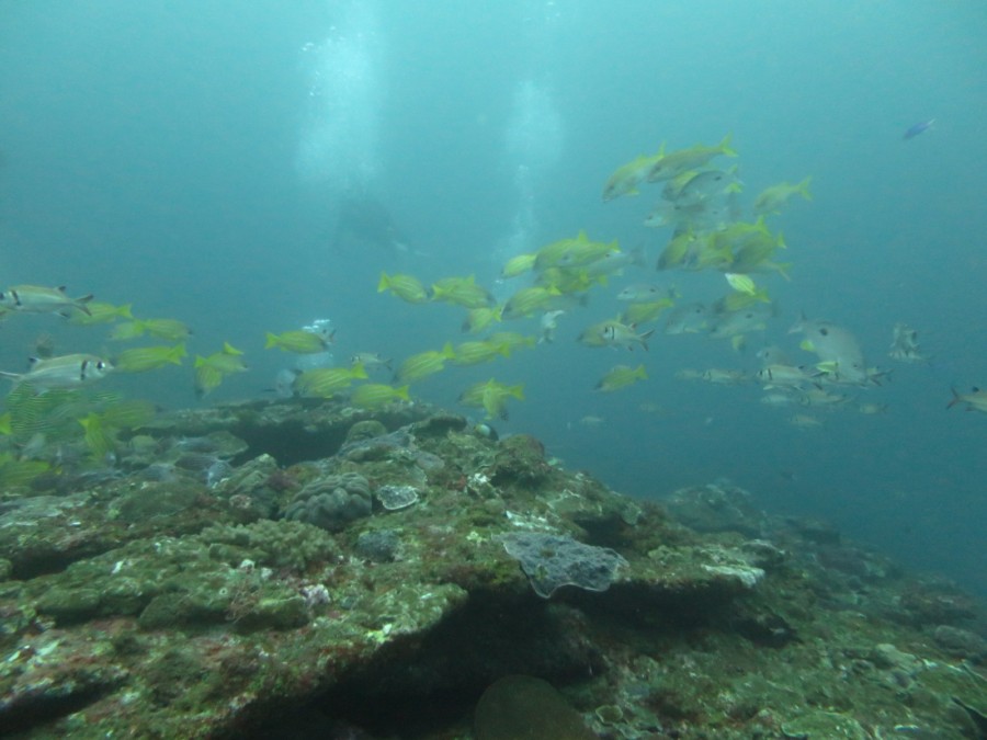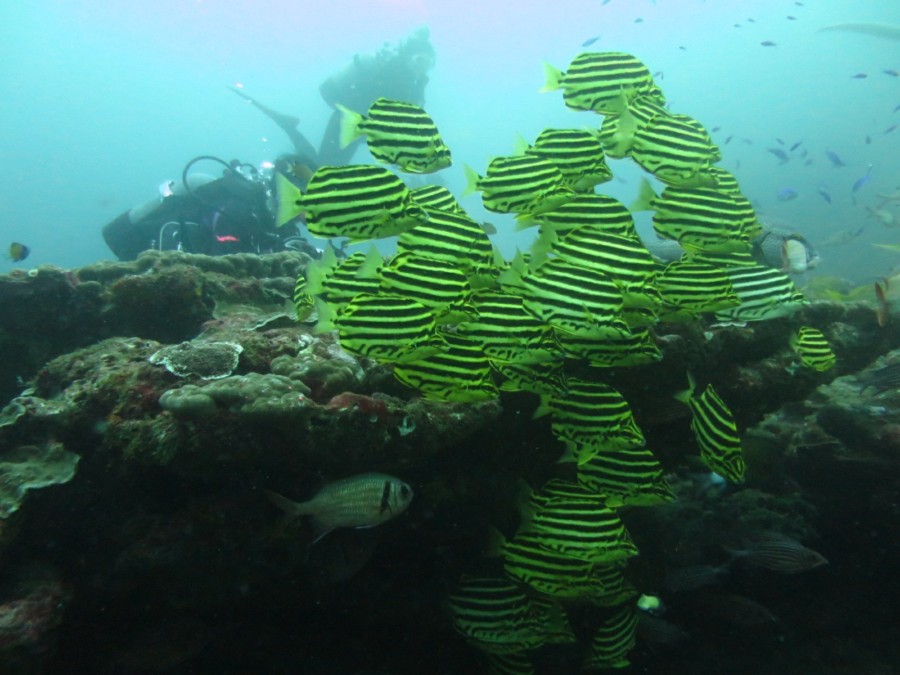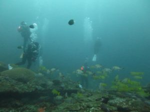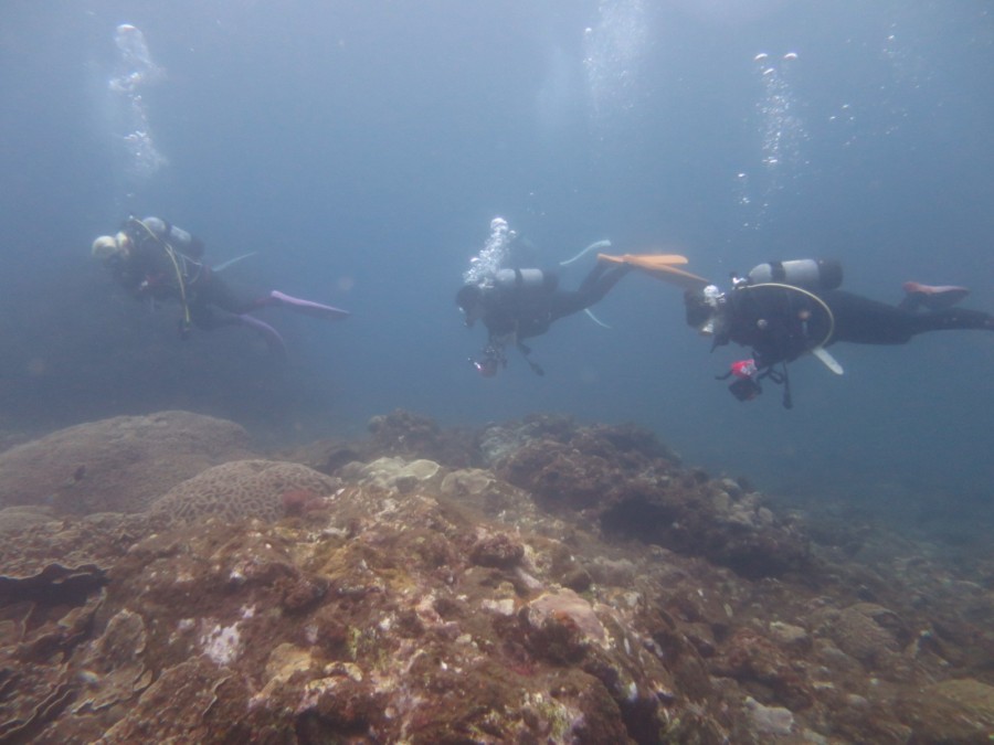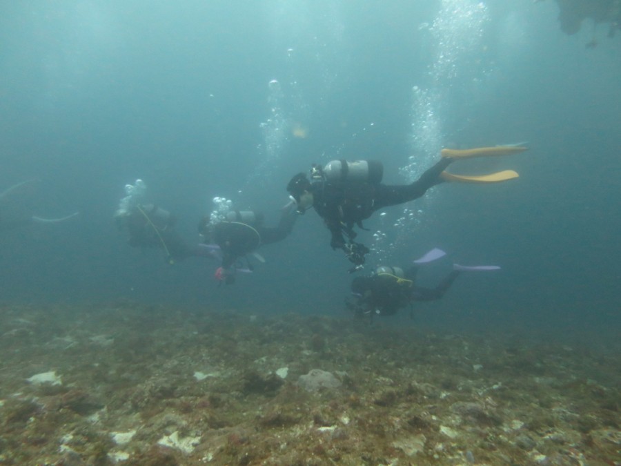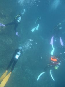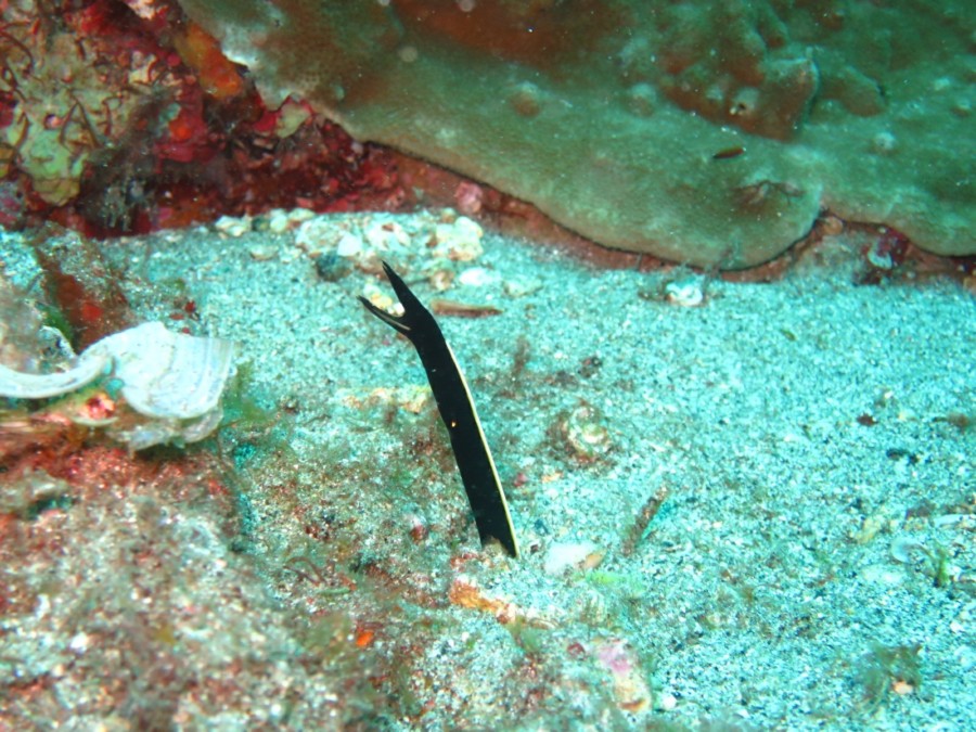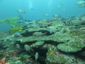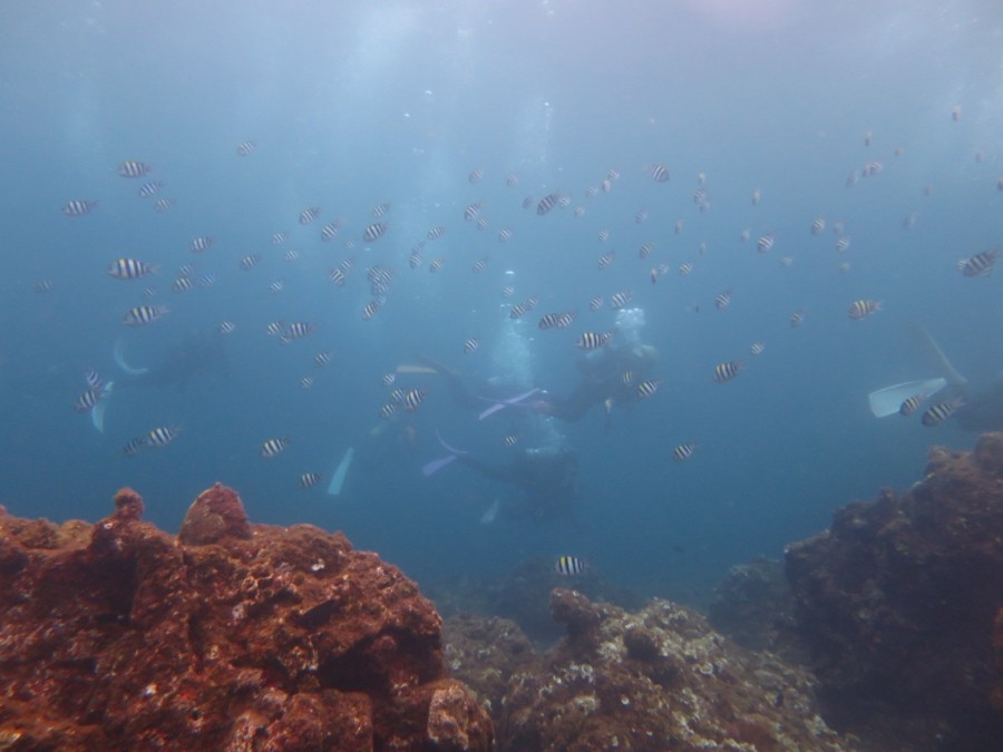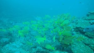 南の海だけあって、可愛い黄色のジョーフィッシュや、真っ黒黒すけなハナヒゲウツボ・チンアナゴ・ツムブリの群れ、珊瑚回りに群れるカラフルな群れ達に、産卵にきていたコブシメまで出会えれました❗