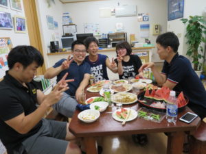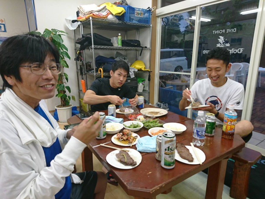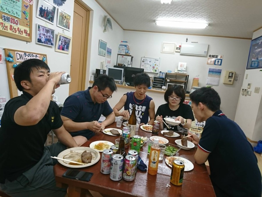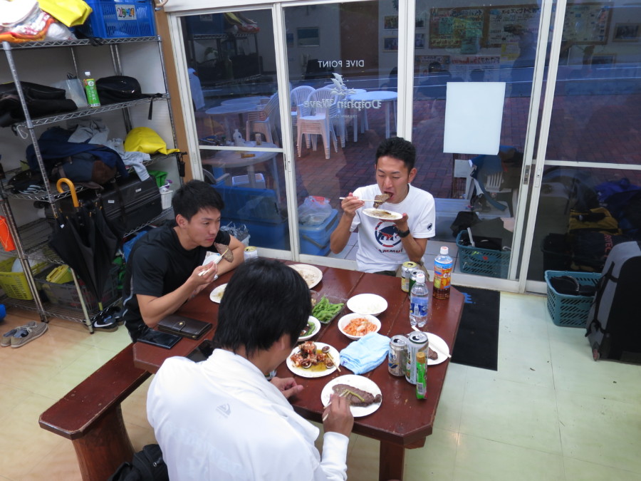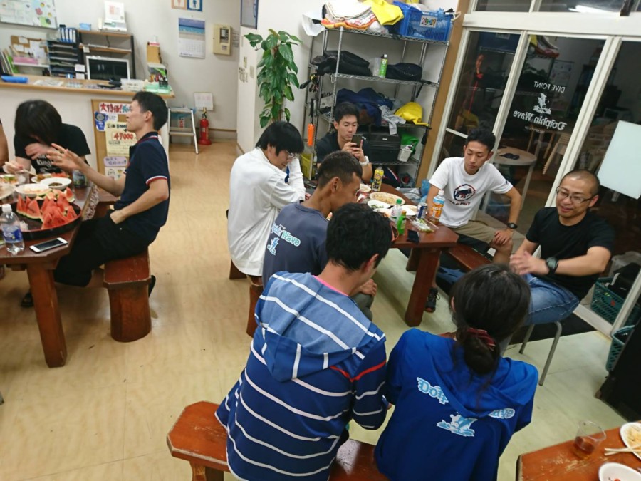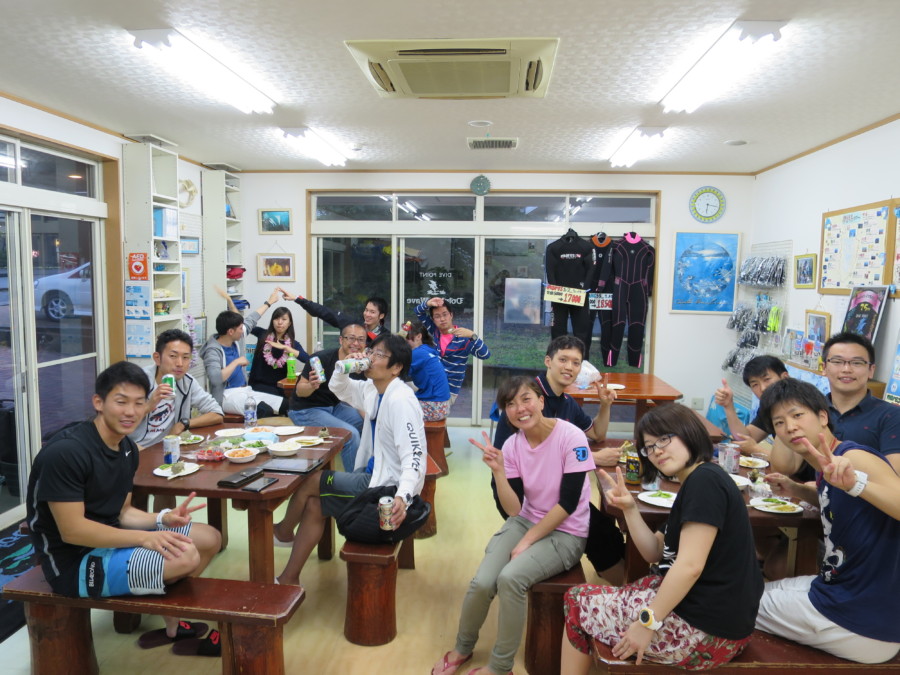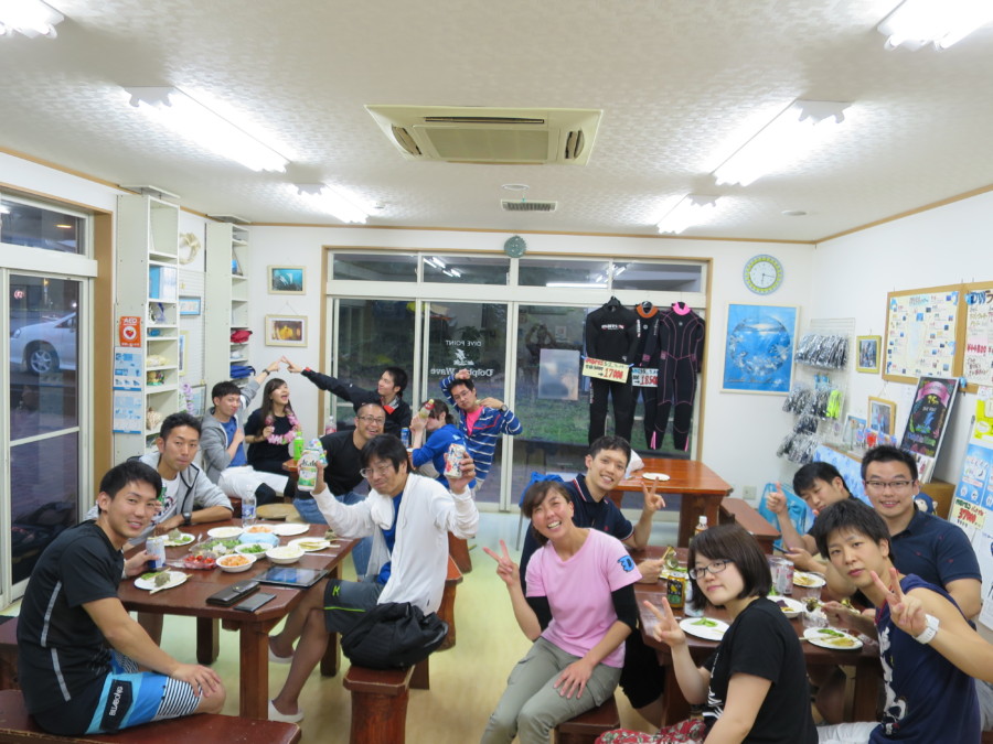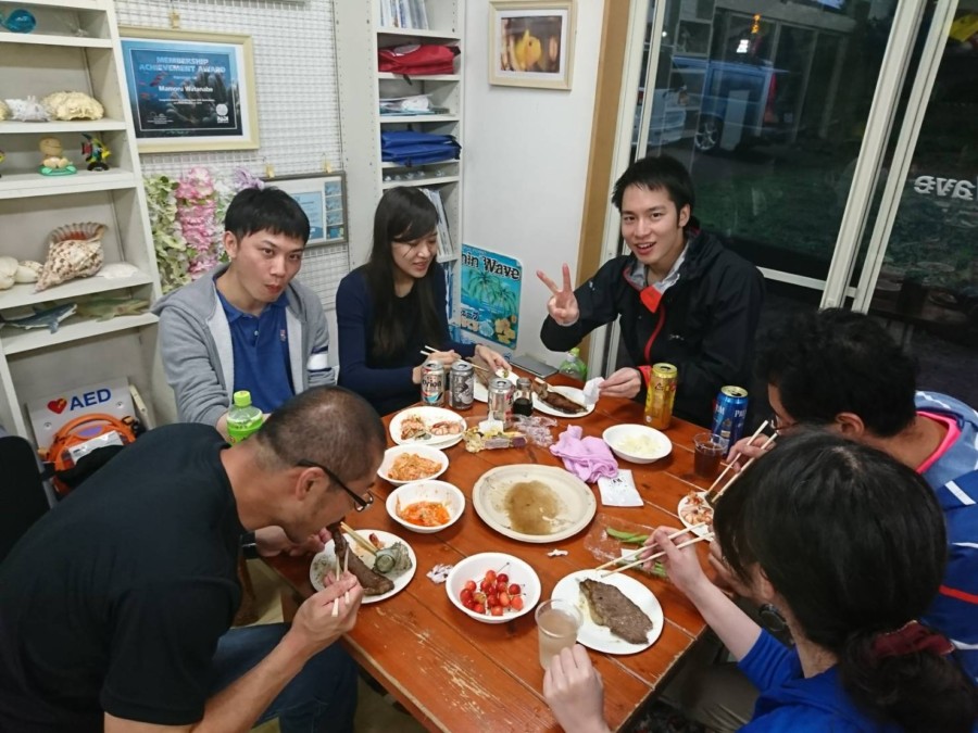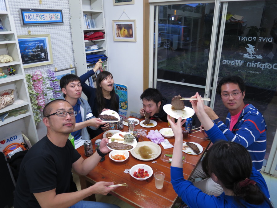 更に、夜は総勢19名でのドルフィンウェーブ恒例豪華サザエ海鮮&ステーキBBQで大盛り上がり~(^O^)