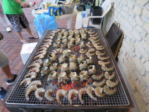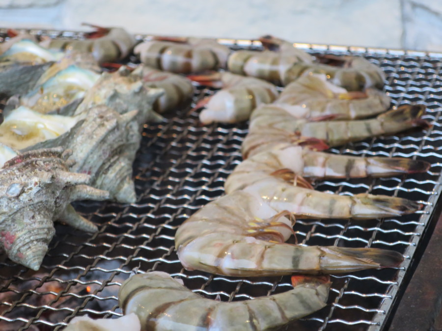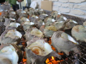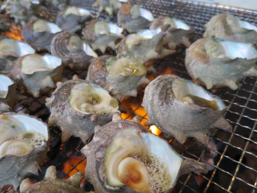 サザエのつぼ焼き、ステーキ、焼き海老、烏賊焼き、たい焼きなどなど