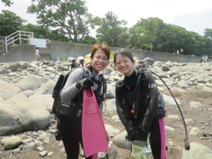 7/27 井田に行ってきました! こんばんは~。 本日は富戸が荒れクローズ。。。 井田へ移動して潜ってまいりました~(^-^)/ 透明度6~8m 水温24~28℃ 見た魚:キンギョハナダイ・アカオビハナダイ・クロホシイシモチ・ネンブツダイ・スズメダイ・イサキ・ マゴチ・ガラスハゼと卵・アオリイカの子供・アミメハギ・ミノカサゴ 本日ご来店のお二人です! 有難うございました!! 次回は富戸で思い切り楽しみましょう♪