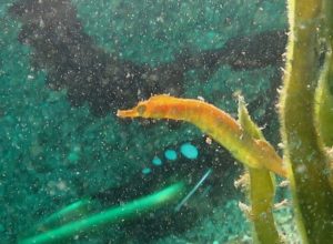 水面の浮遊物の下ではアオリイカの子供が群れていました!