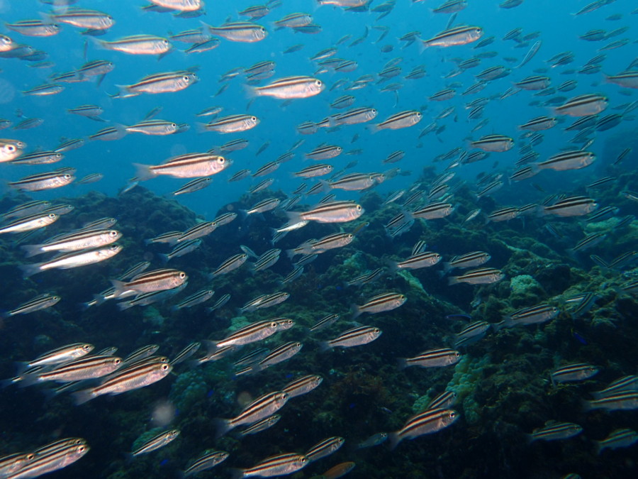 群れはイサキの子供、タカサゴの子供が元気よく右に左へ動き回ります!!