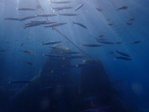アオリイカの子供達の群れやカマスの群れを堪能しながら