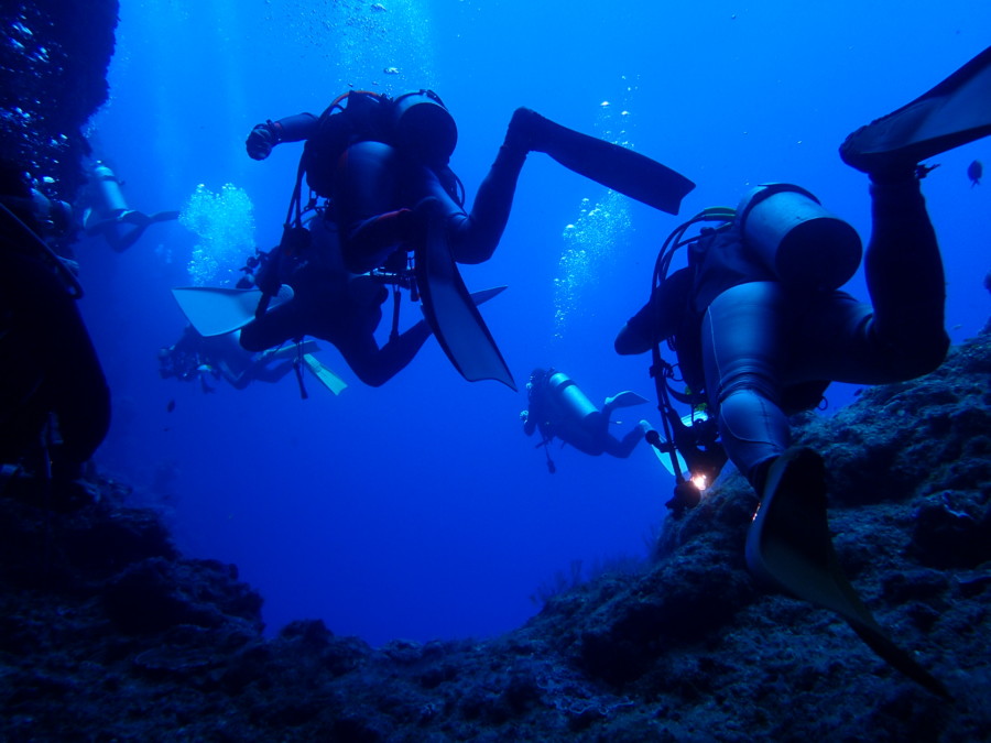 青い海に底の見えないドロップオフを飛ぶように浮遊してドリフトしてきました!!
