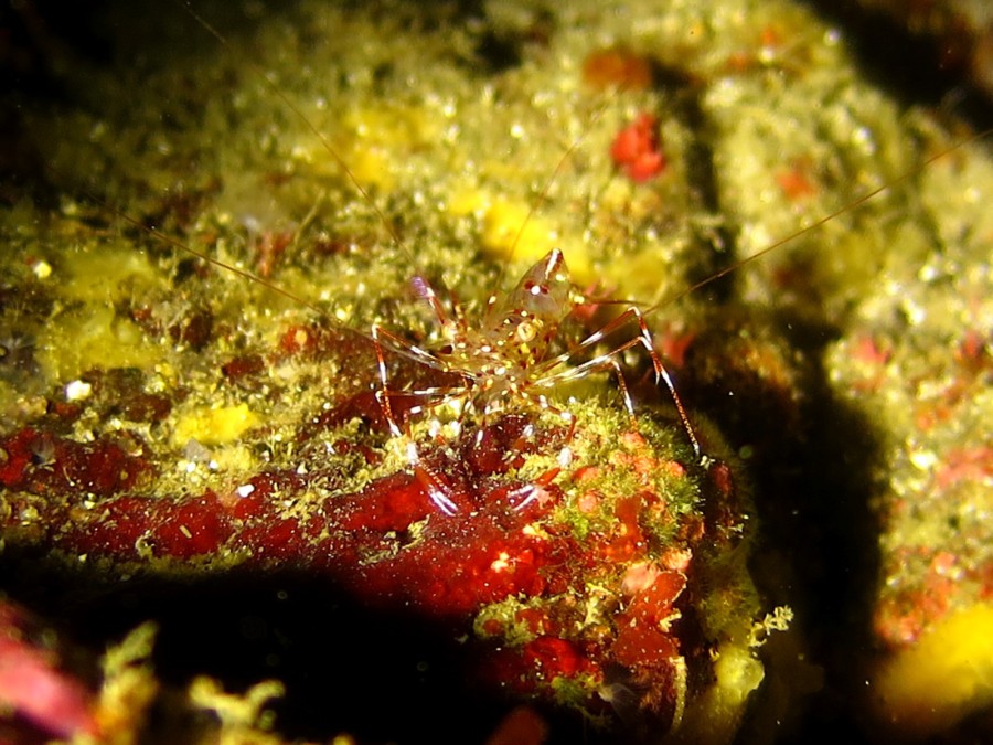 大きな岩の割れ目には小さなオトヒメエビや