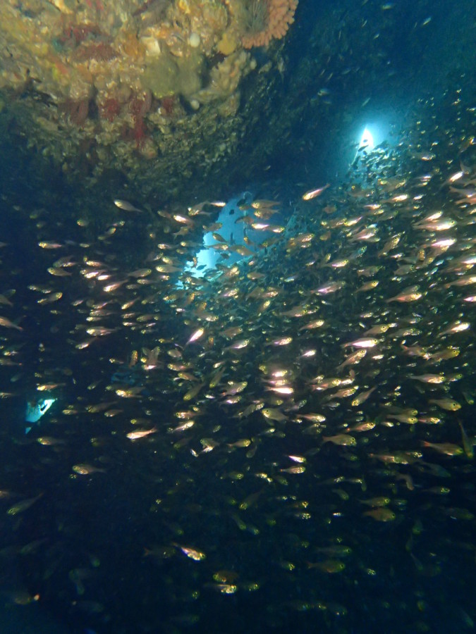 エキジットには光のシャワーを浴びながらアオリイカが隊列組んでました!