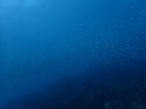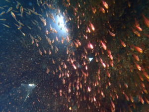 テトラポットについたらキンメモドキの大群!