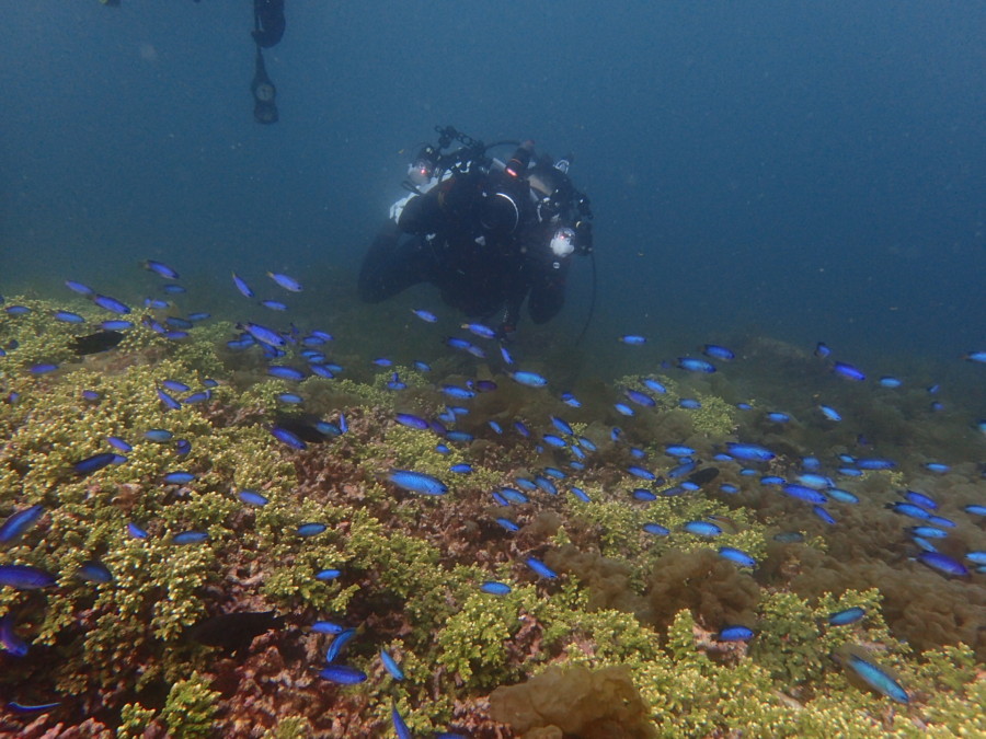 どこに今まで隠れていたんだろうっていうくらいのソラスズメダイがやってきてました♪♪