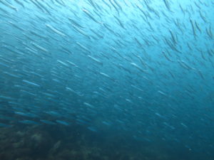 今日の圧巻はキビナゴの大群とカンパチ大群とのバトル!!