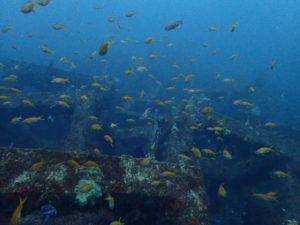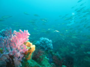 ピラミッドは漁礁にオレンジ色一面にキンギョハナダイの乱舞♪