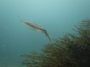 ビーチではアオリイカの産卵♪に可愛いヒレナガネジリンボウにカミソリウオのペア。