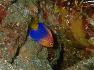 ちょっと小さめの50円玉サイズのレンテンヤッコの幼魚が観察できてます♪