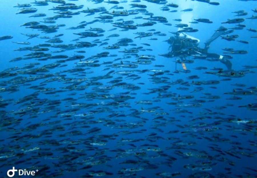 2ダイブ目には、ホシフグの大群🎵スイミーの様に形を変えて群れてました❗