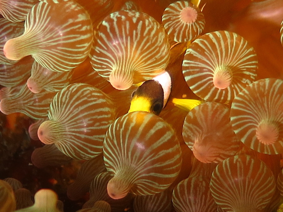 イソギンチャクにはまだ沢山のミツボシクロスズメダイ!