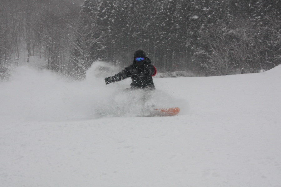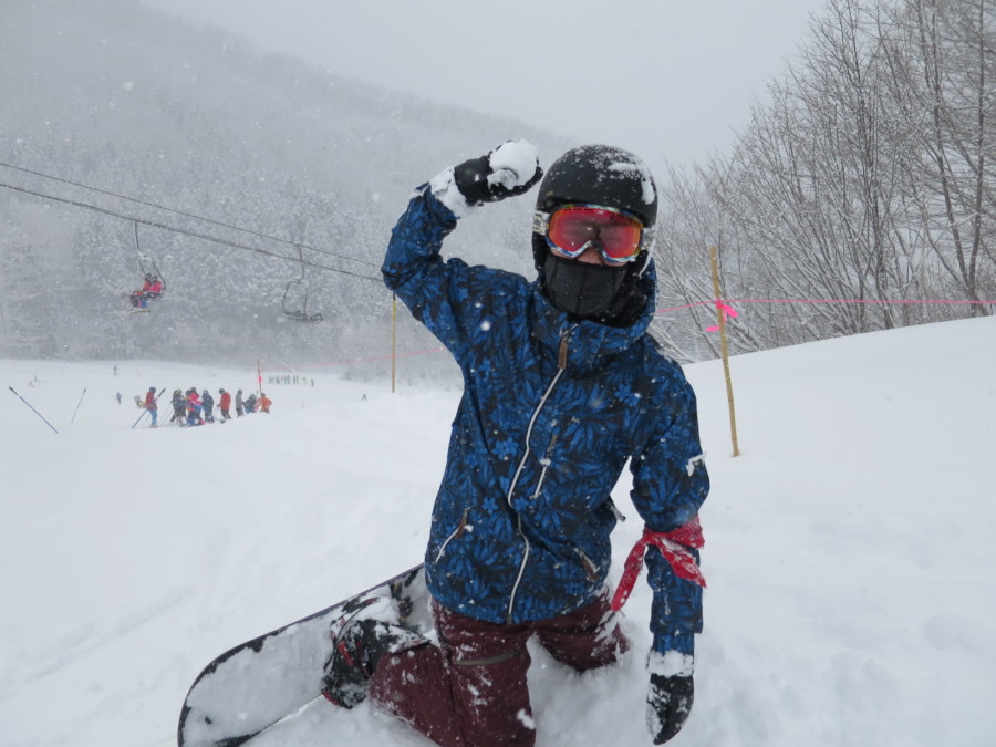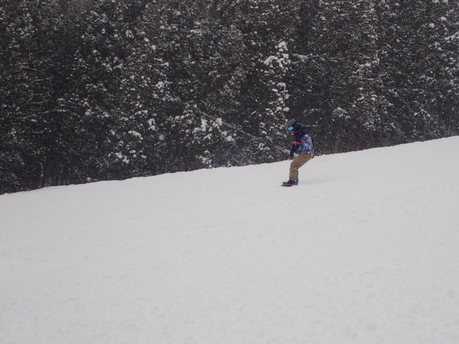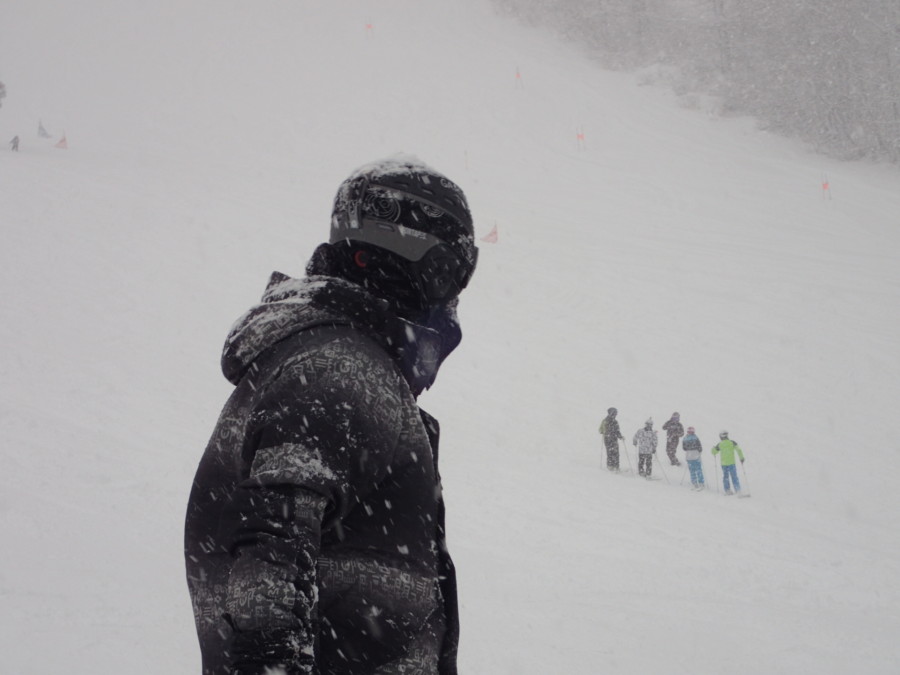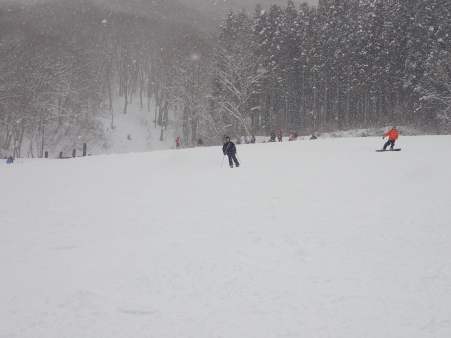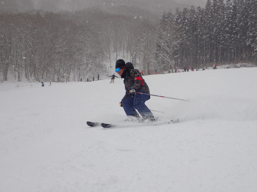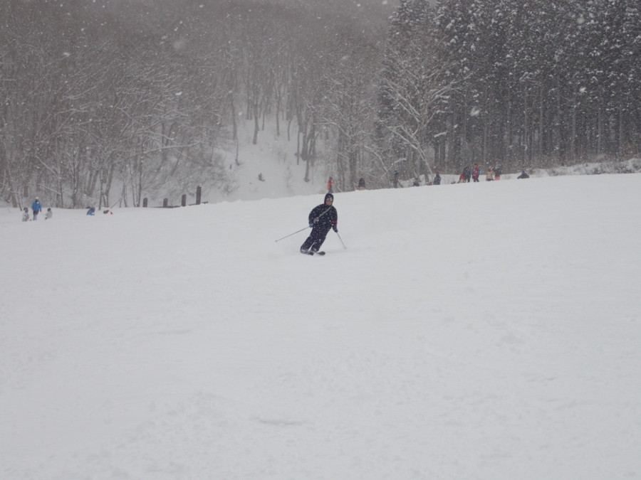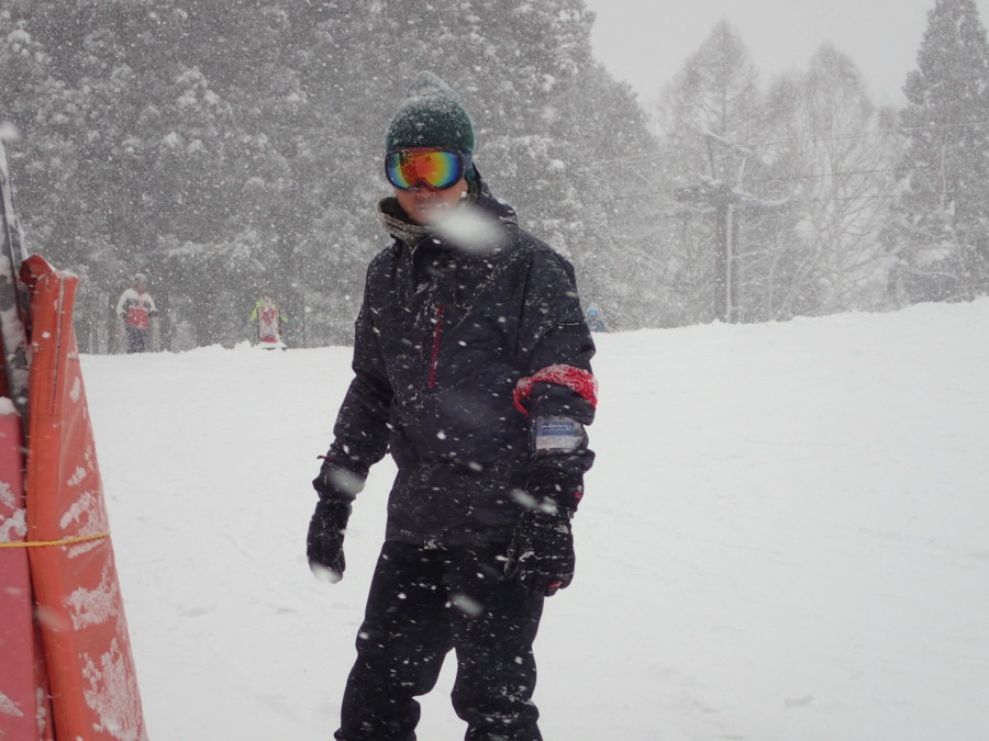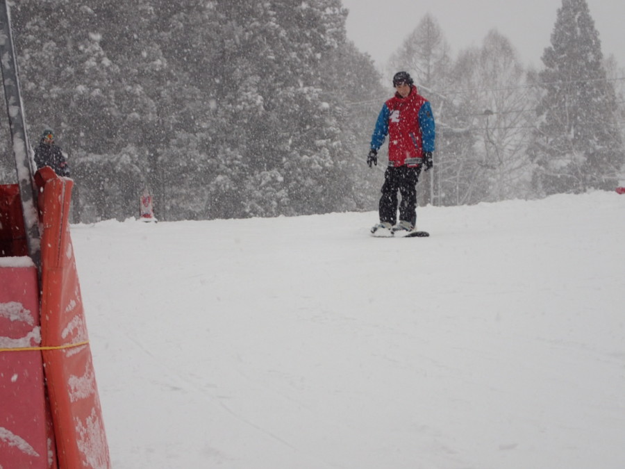 初日は心配していた雪不足を一掃する雪の中\(^o^)/