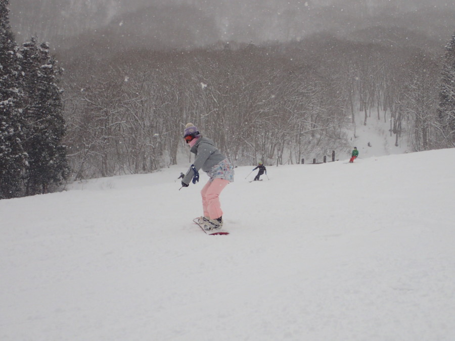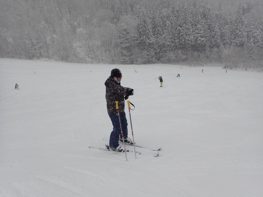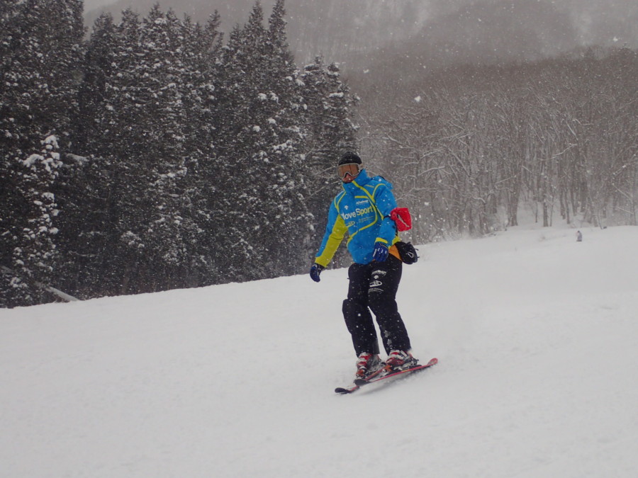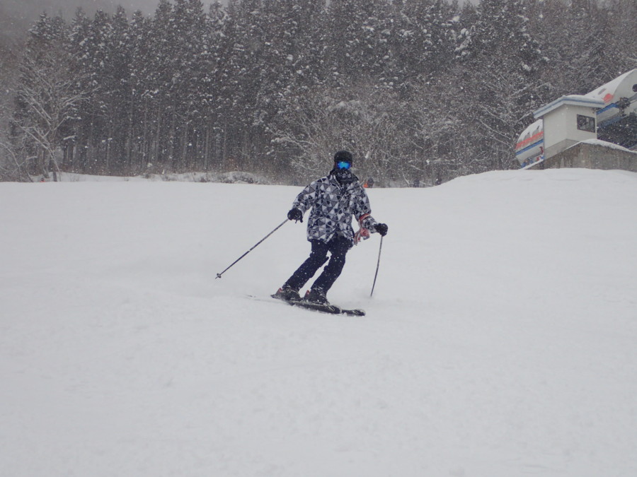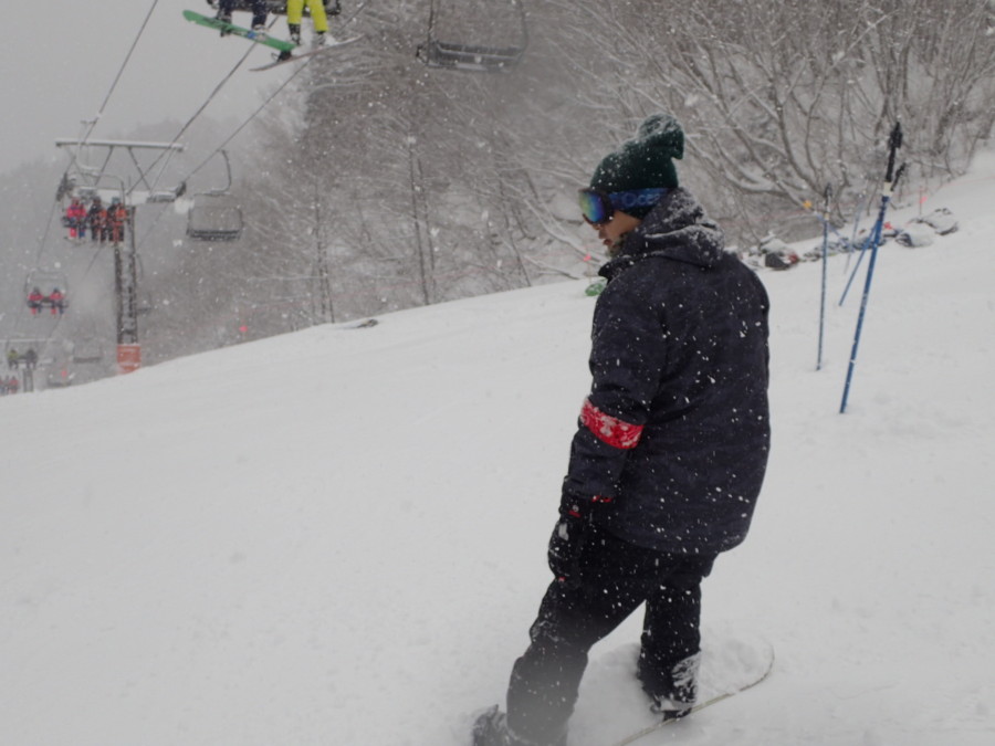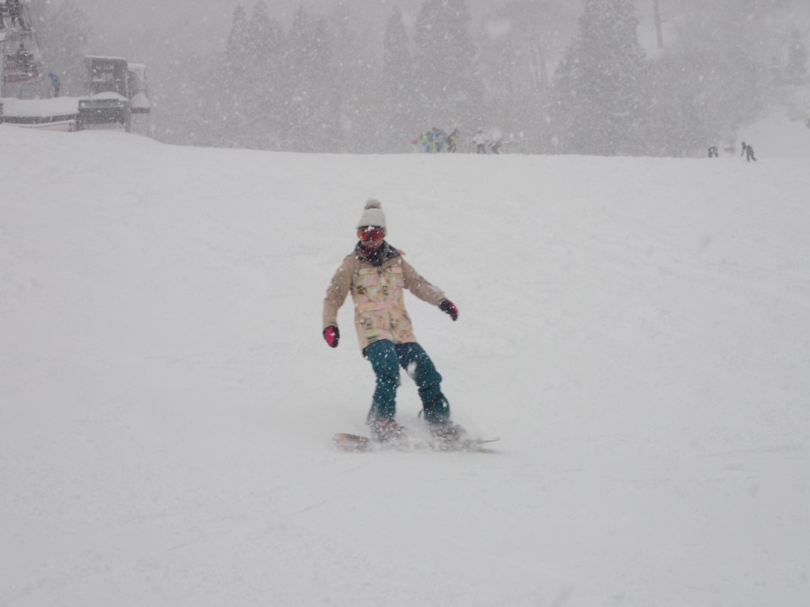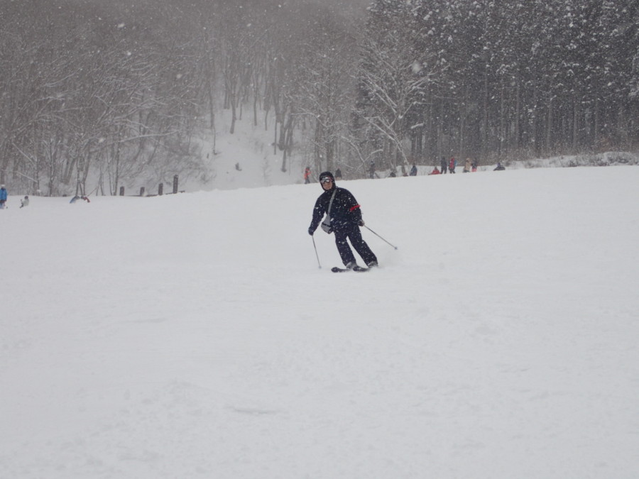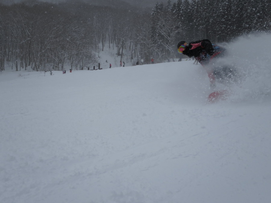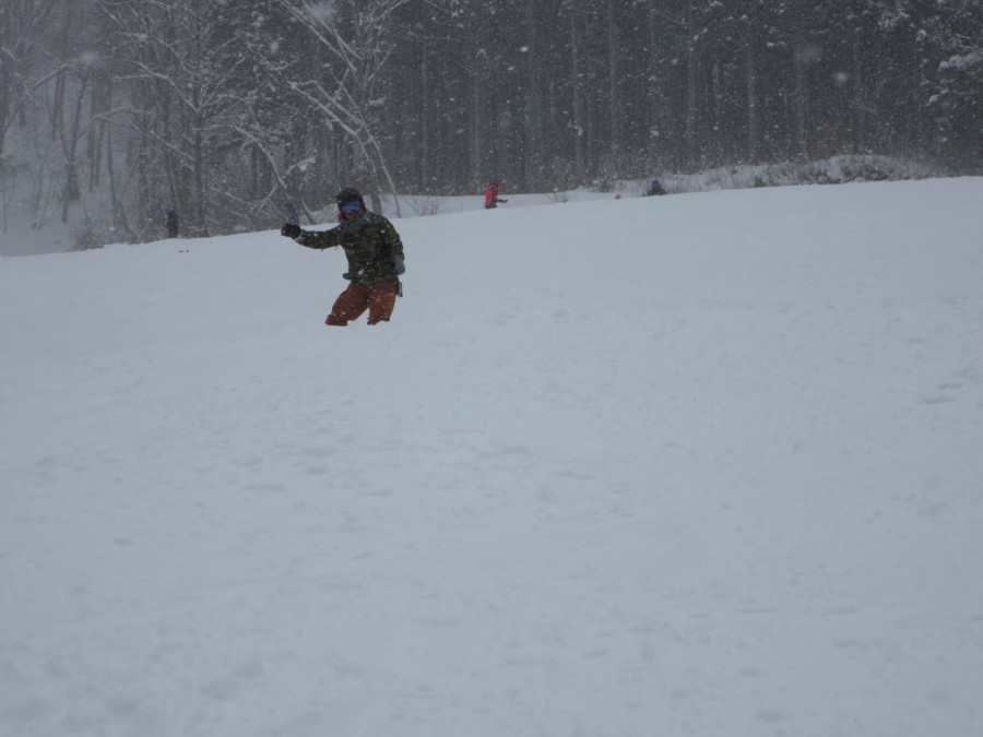 初日は心配していた雪不足を一掃する雪の中\(^o^)/