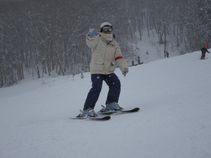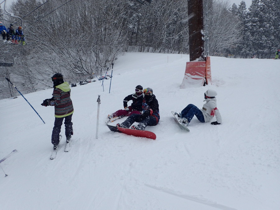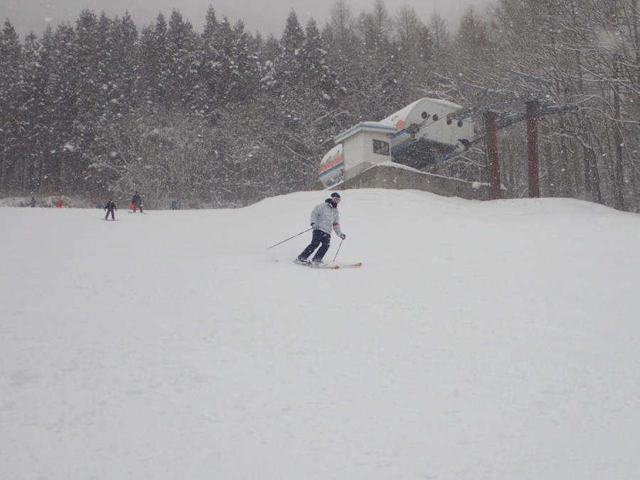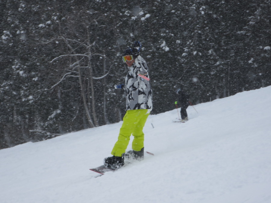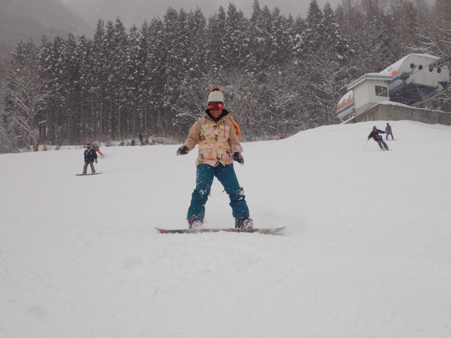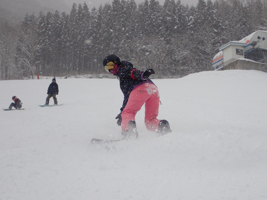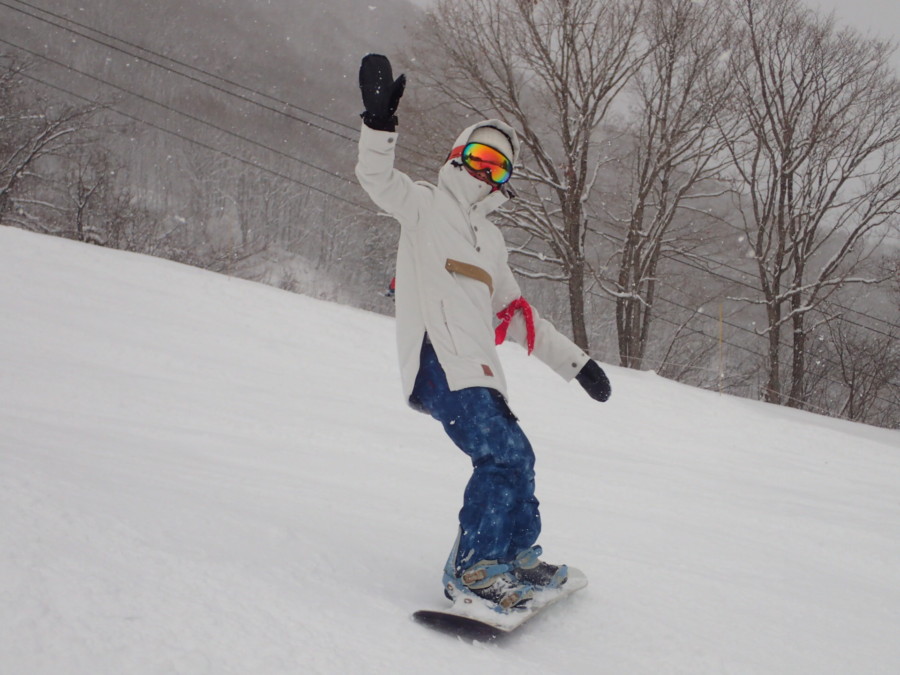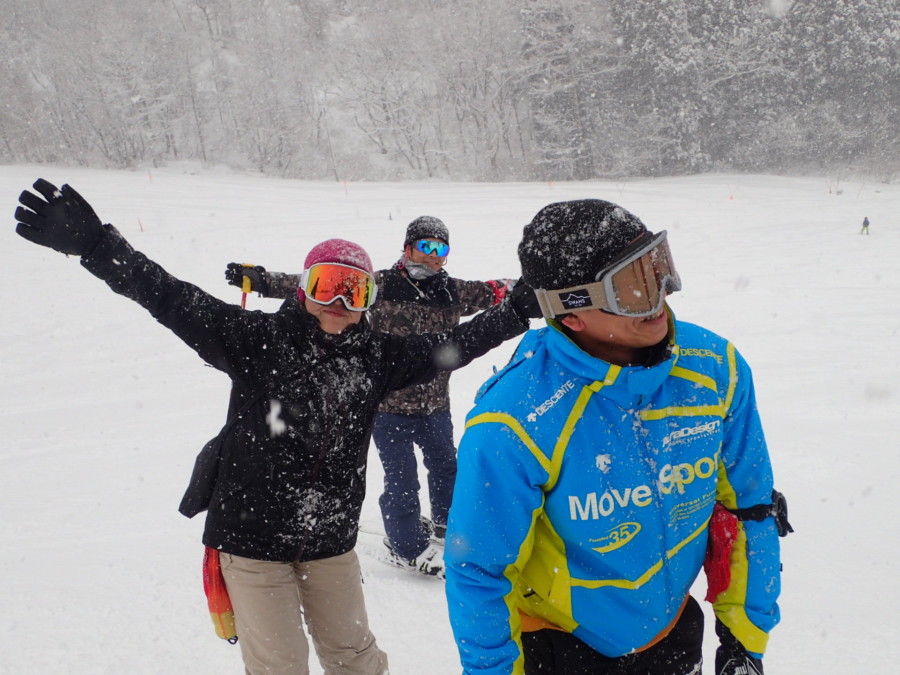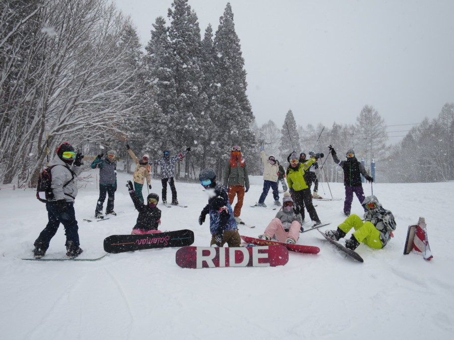 初日は心配していた雪不足を一掃する雪の中\(^o^)/