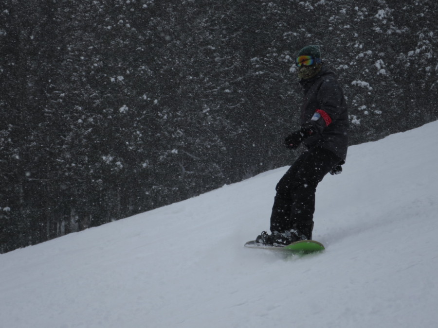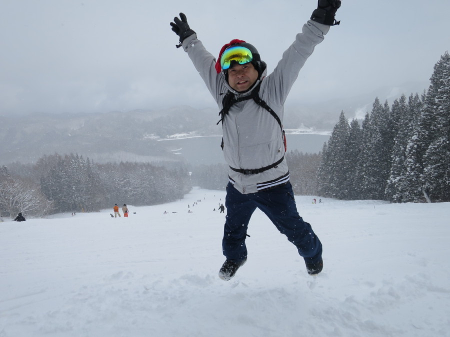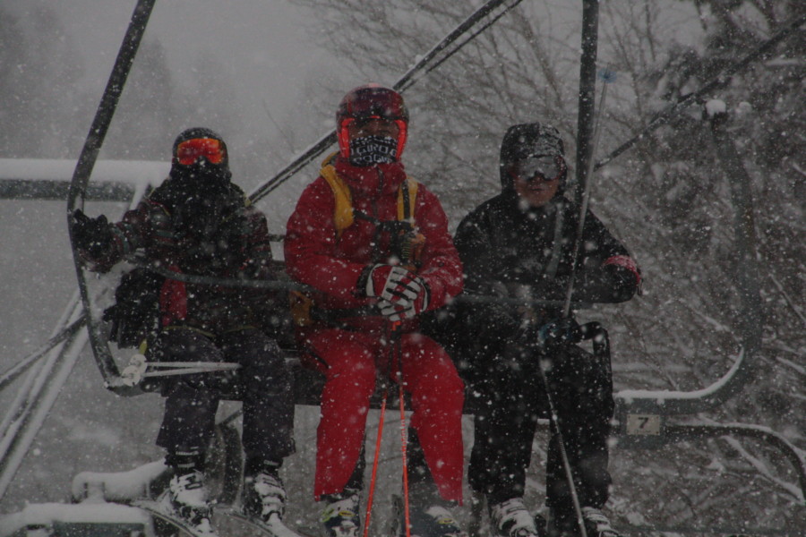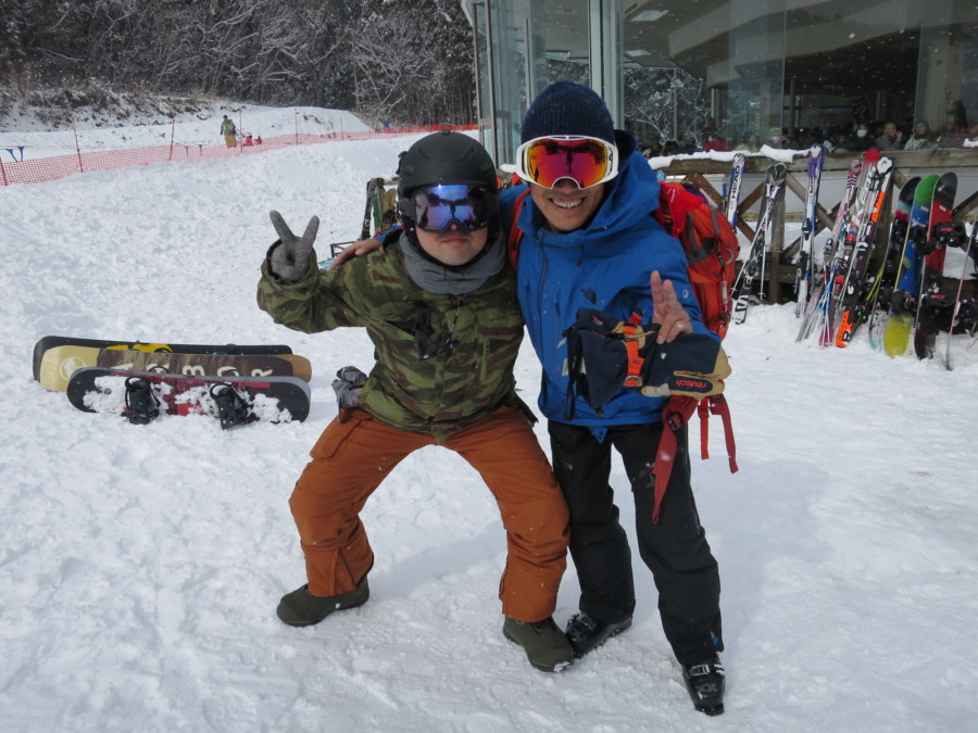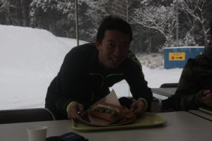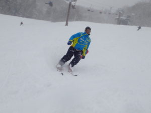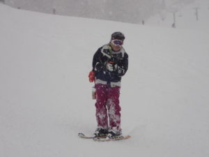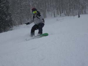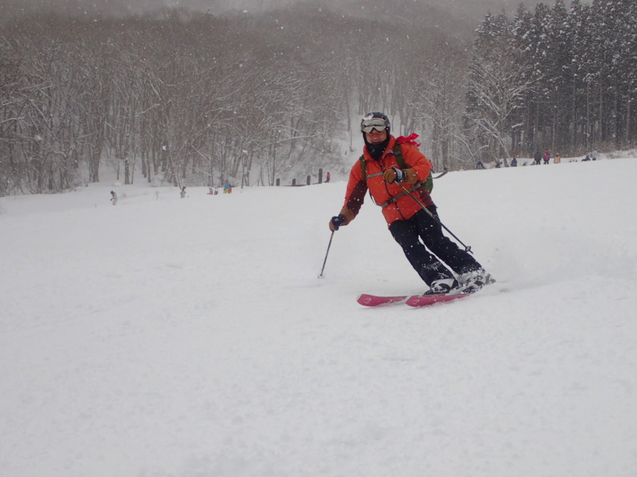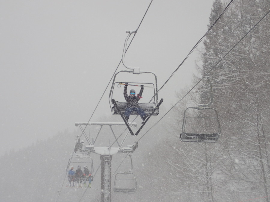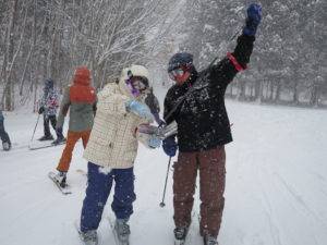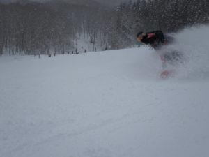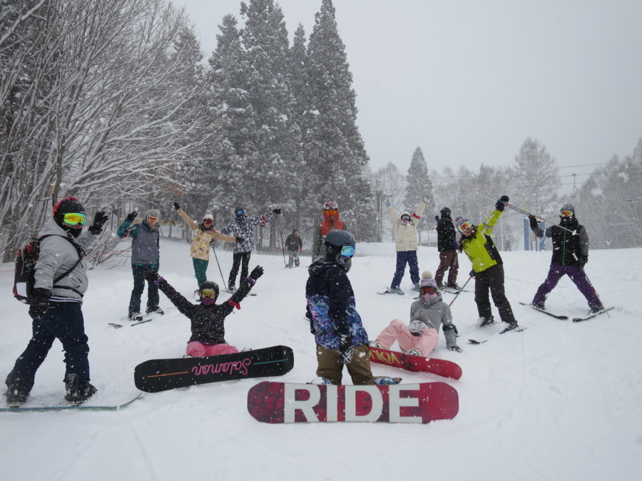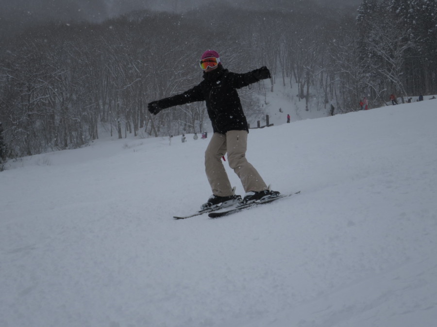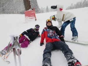 初日は心配していた雪不足を一掃する雪の中\(^o^)/