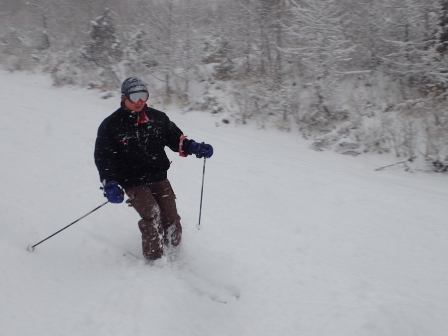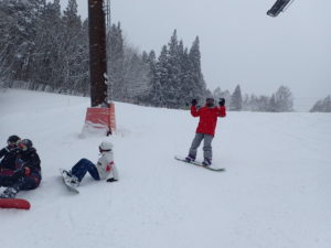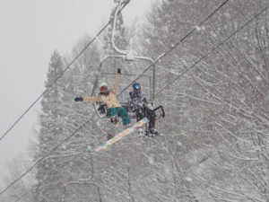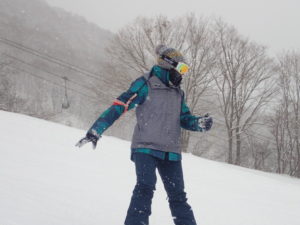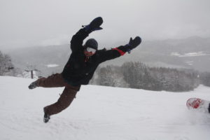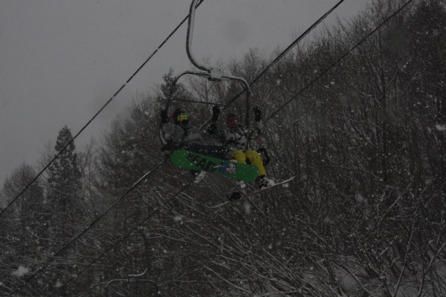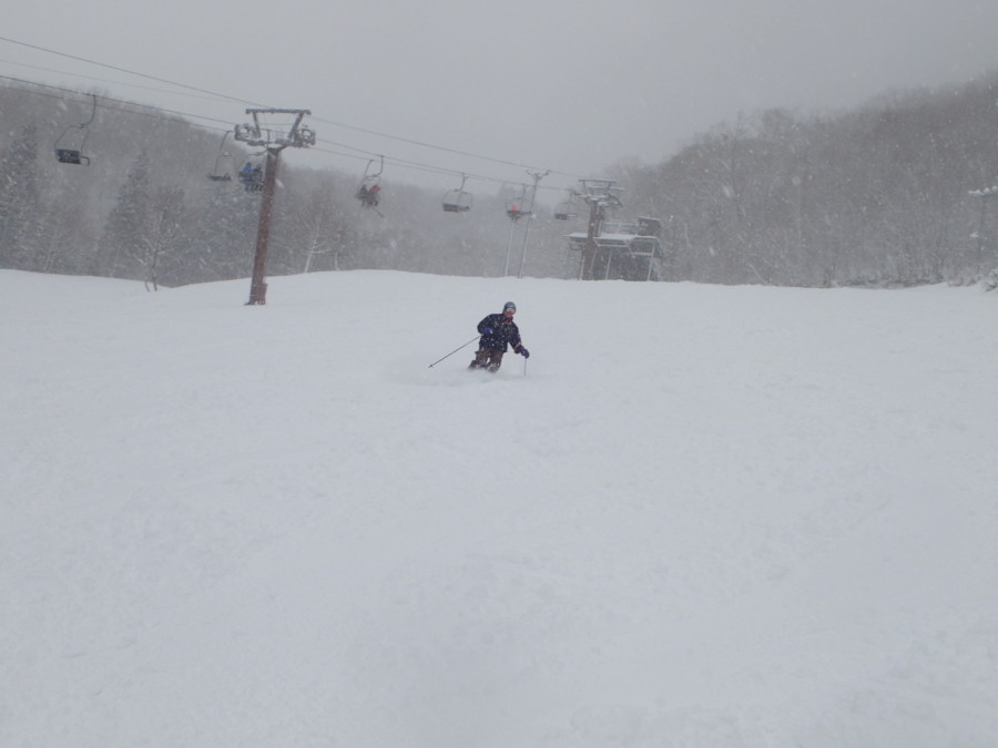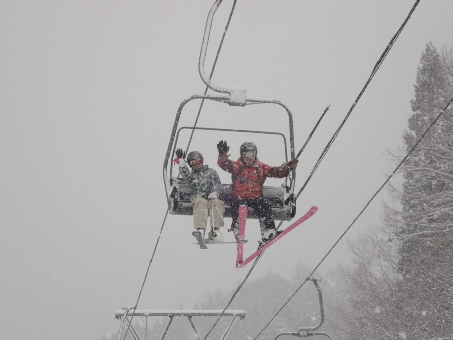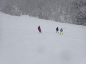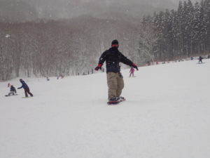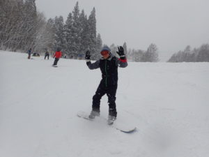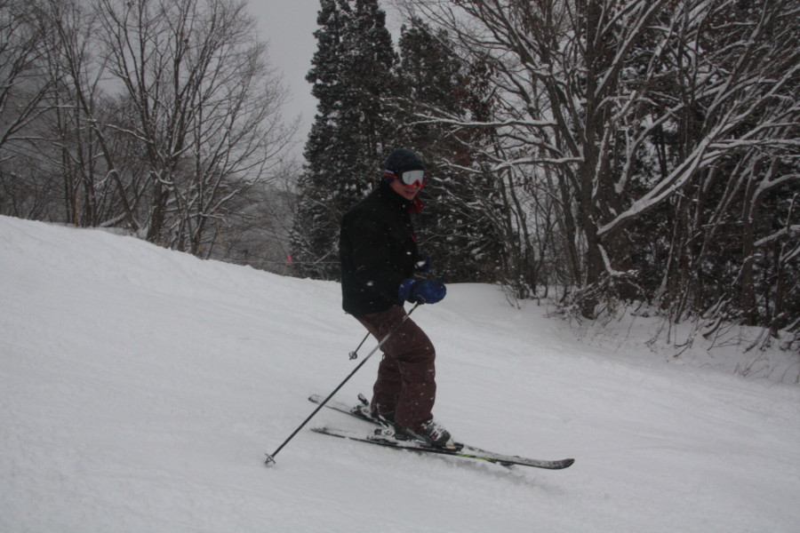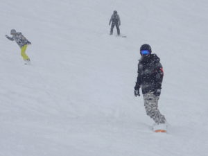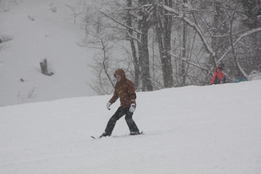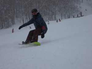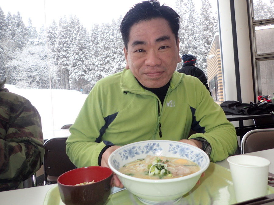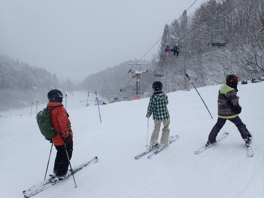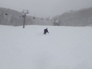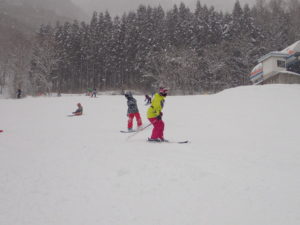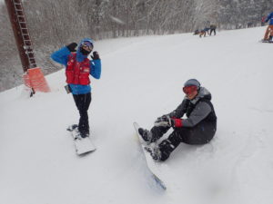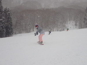 初日は心配していた雪不足を一掃する雪の中\(^o^)/