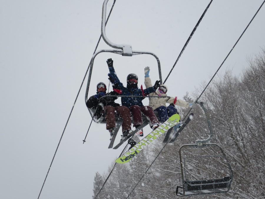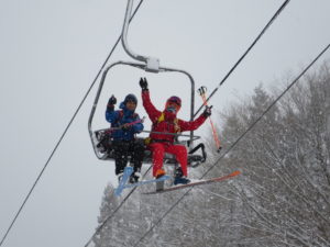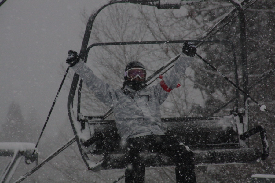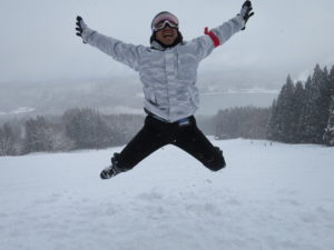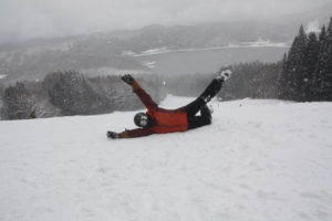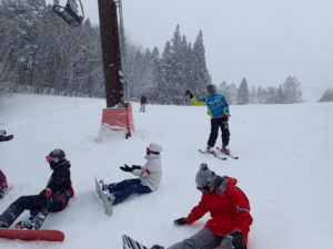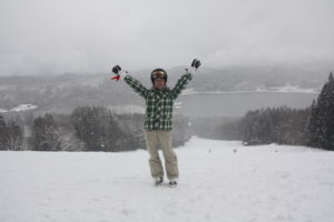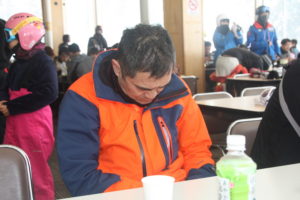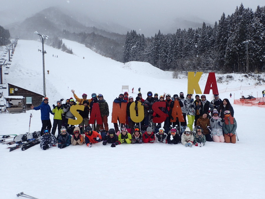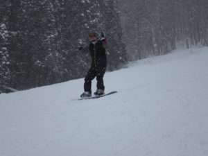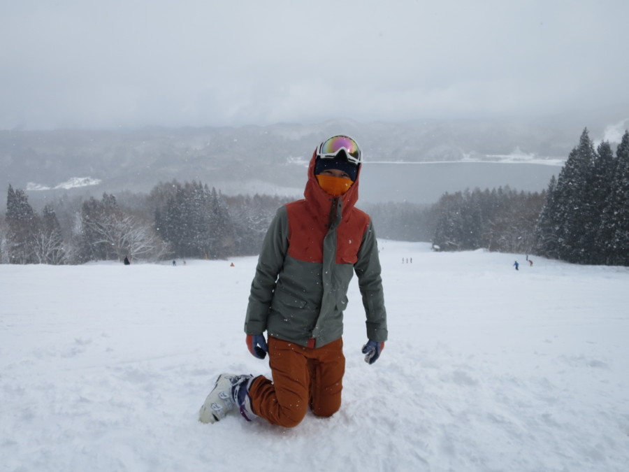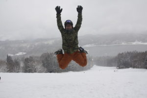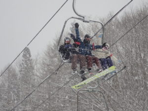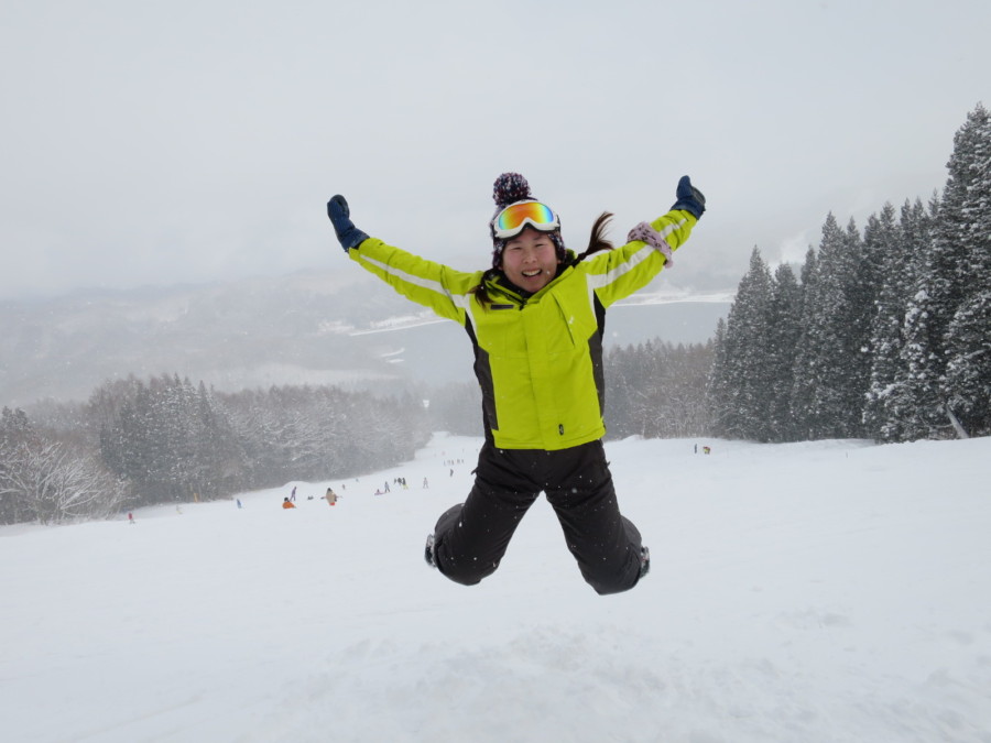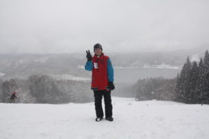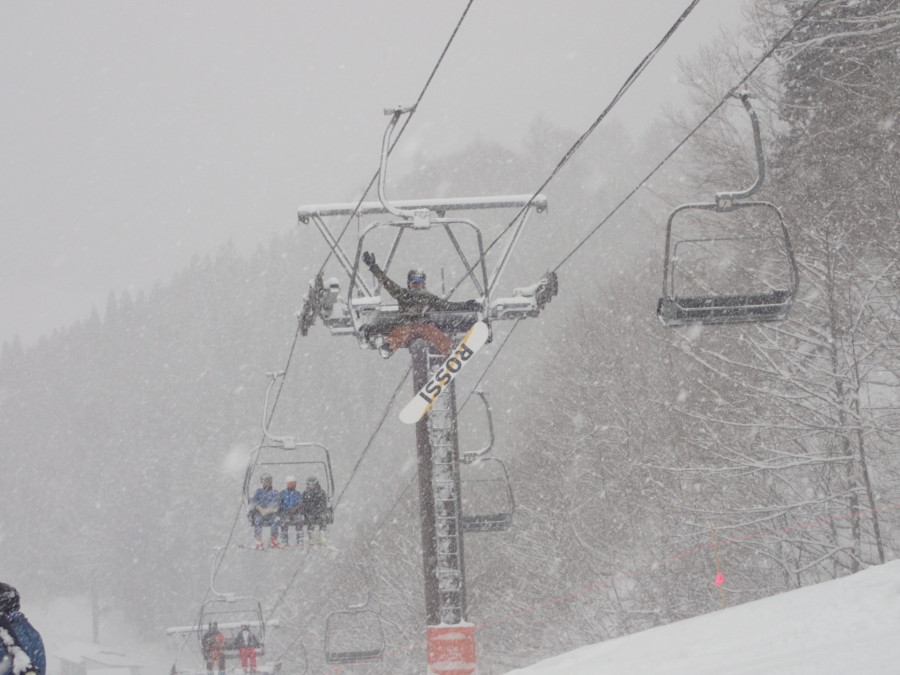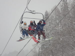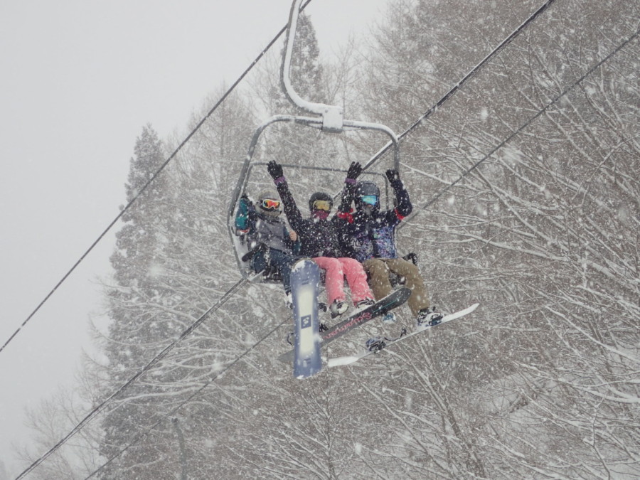 初日は心配していた雪不足を一掃する雪の中\(^o^)/