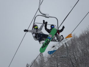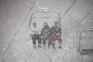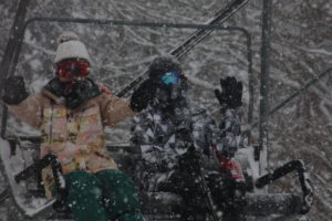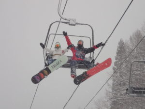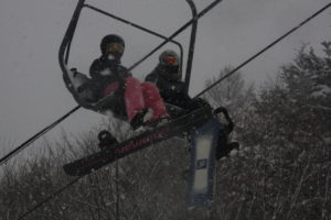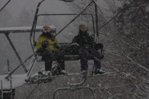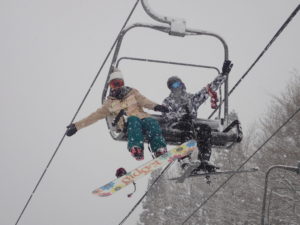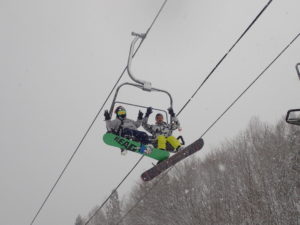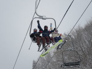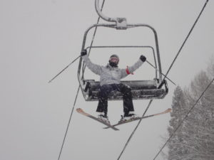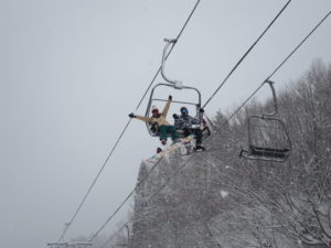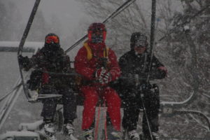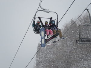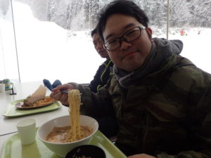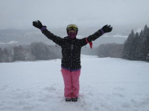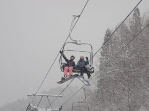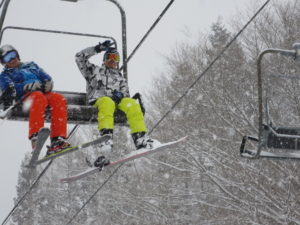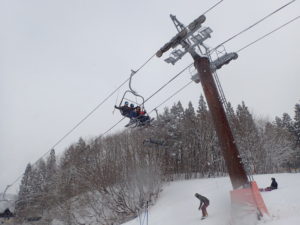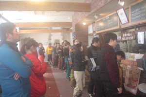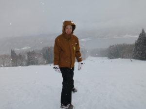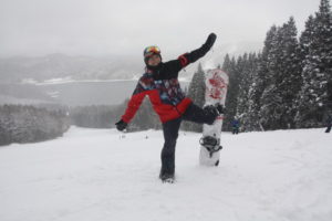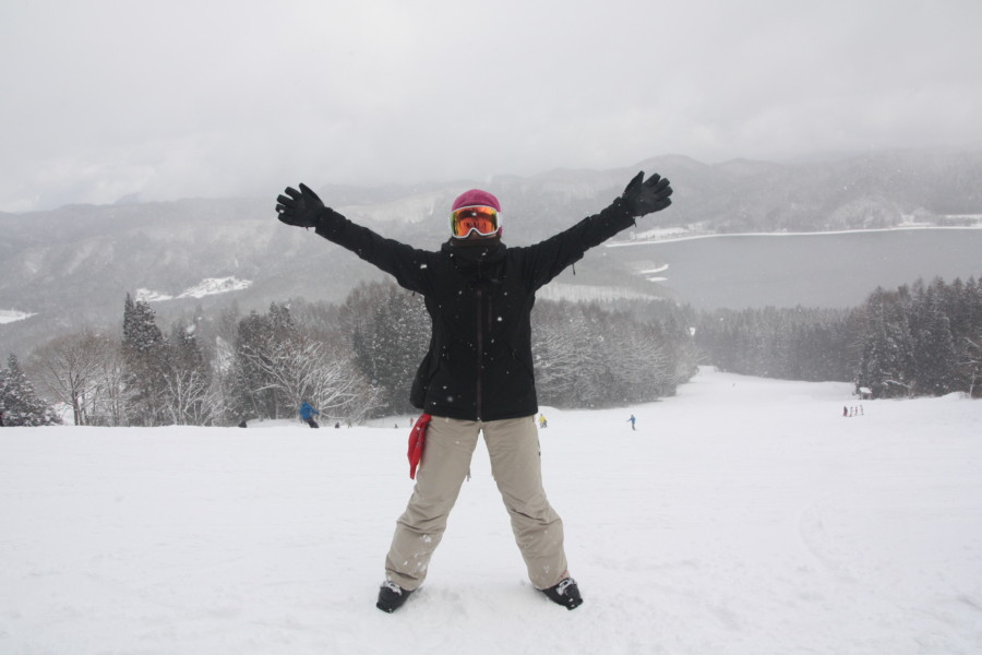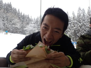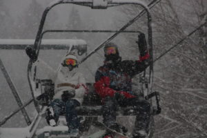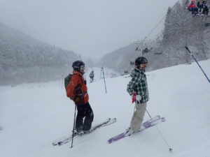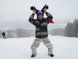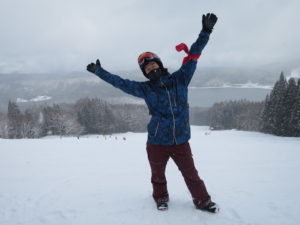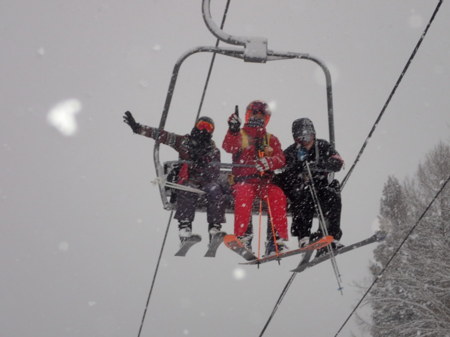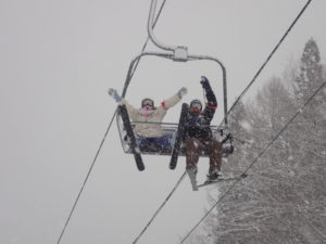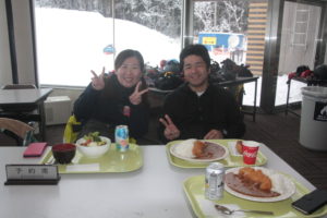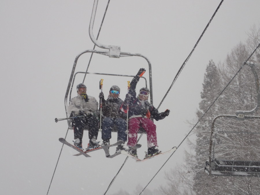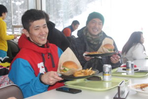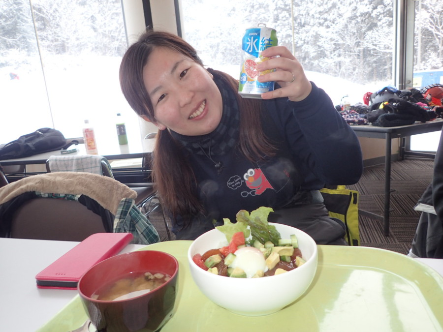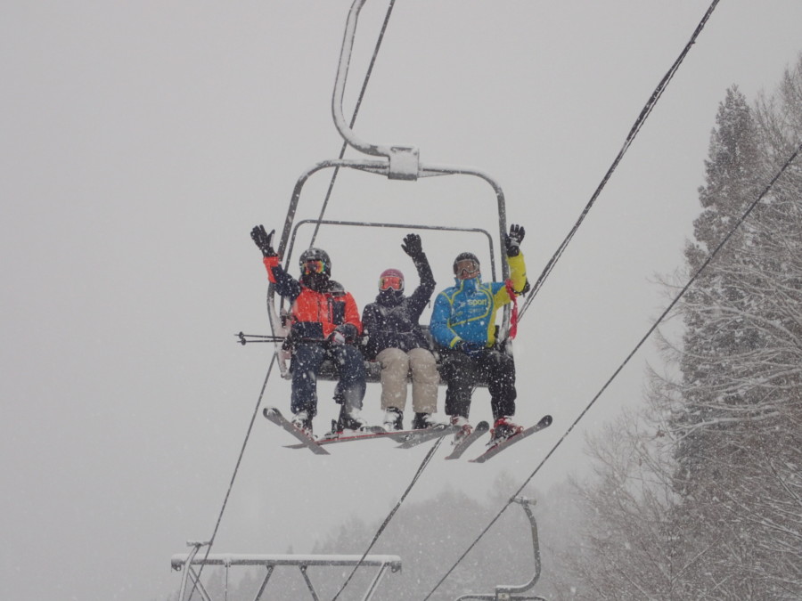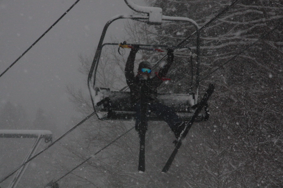 初日は心配していた雪不足を一掃する雪の中\(^o^)/