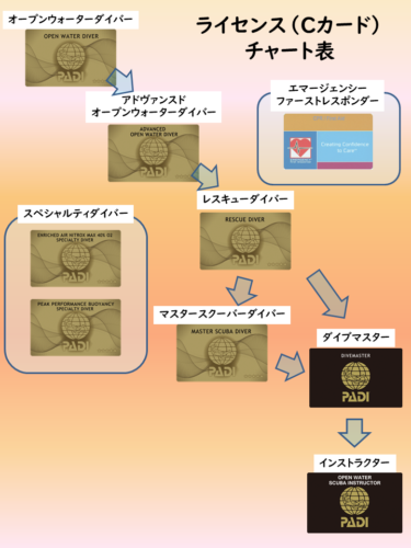 ※「ライセンス」については正式には「Cカード」(Certification card(認定カード))になりますがわかりやすく「ライセンス」と記載しております。