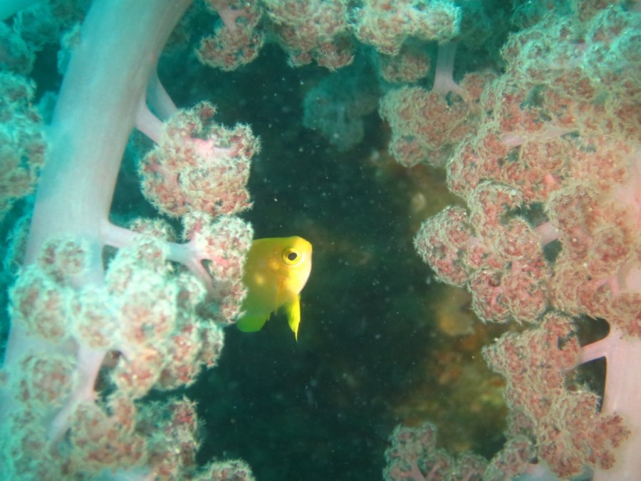 ソフトコーラルの中にはコガネスズメダイが隠れてます♪
