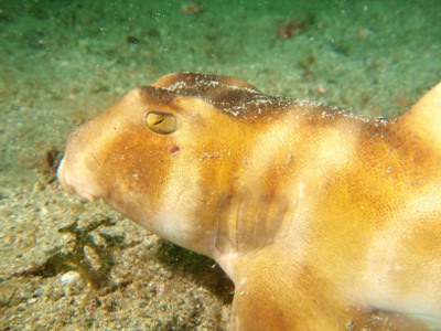 砂地にド~ンっと登場したのは、ネコザメの子供で~す♪