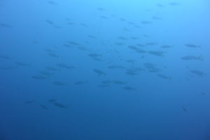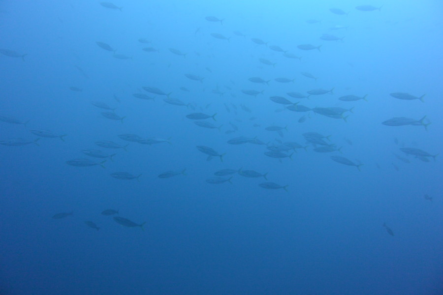 ツバメウオがのんびり泳いでいる横をキビナゴ群とイナダ群がビューっと