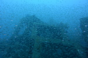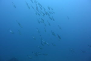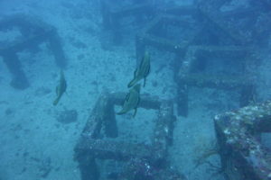 少し泳げば巨大漁礁もみえてきて、上からはイスズミの群や