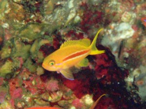 その帰りには、最近元気を取り戻したのか、あんまり隠れなくなったスジハナダイ!!