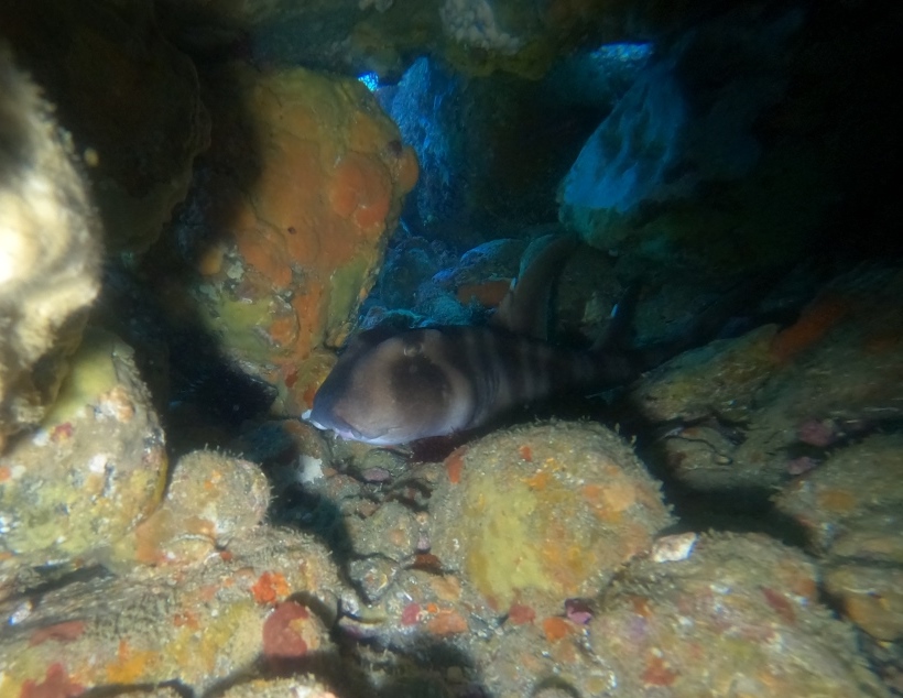 ネコザメもいつもの岩の中でお休み中♪