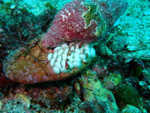 ミガキボラがタコノマクラに産卵してました♪