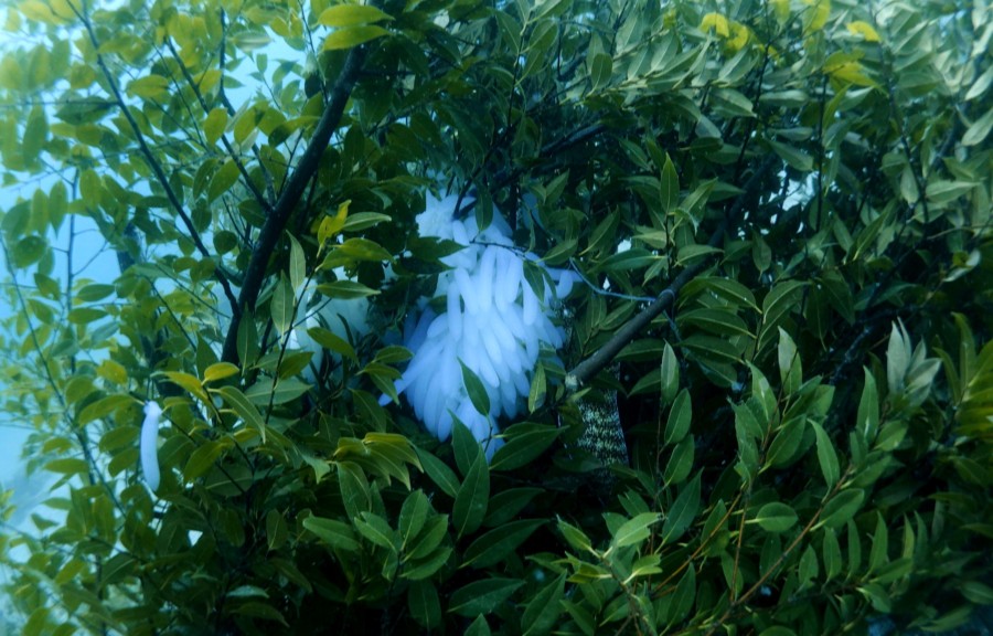 2週間ほど前に設置されたアオリイカの産卵床には