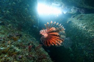 テトラの隙間から差し込む光とハナミノカサゴ♪