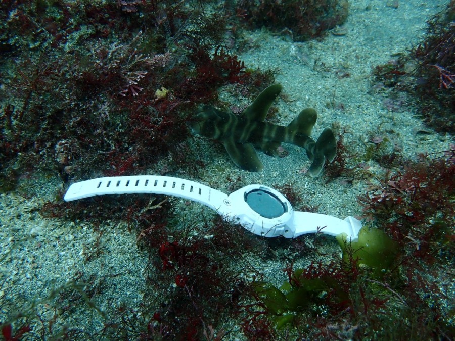岩の間には超ビッグサイズのネコザメが鎮座!