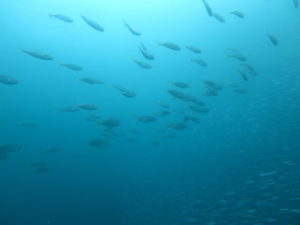 キビナゴも逃げ回りあっという間に360℃キビナゴに囲まれました~!